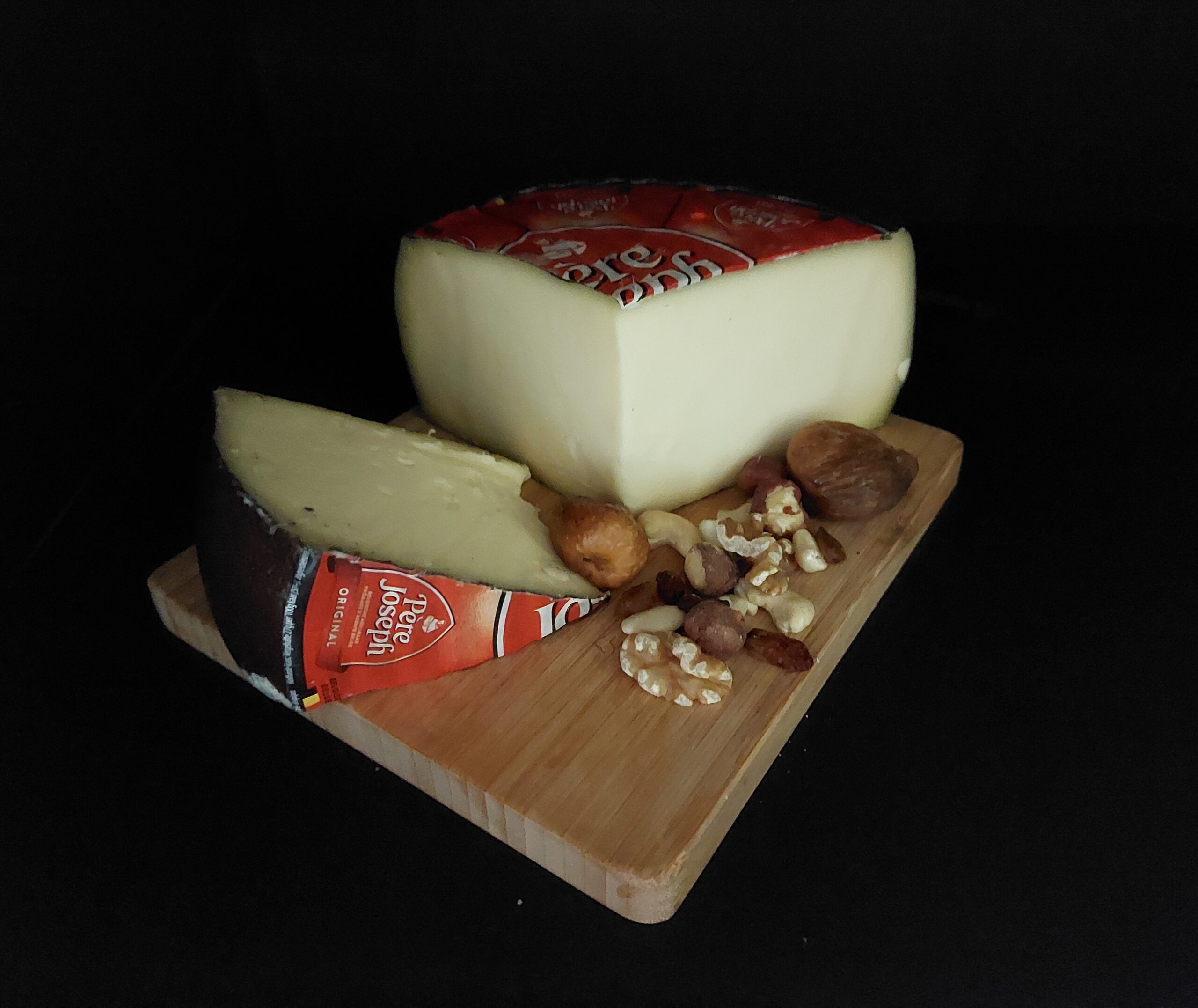 Belgische halfharde abdijkaas met een typische donkerbruine korst.